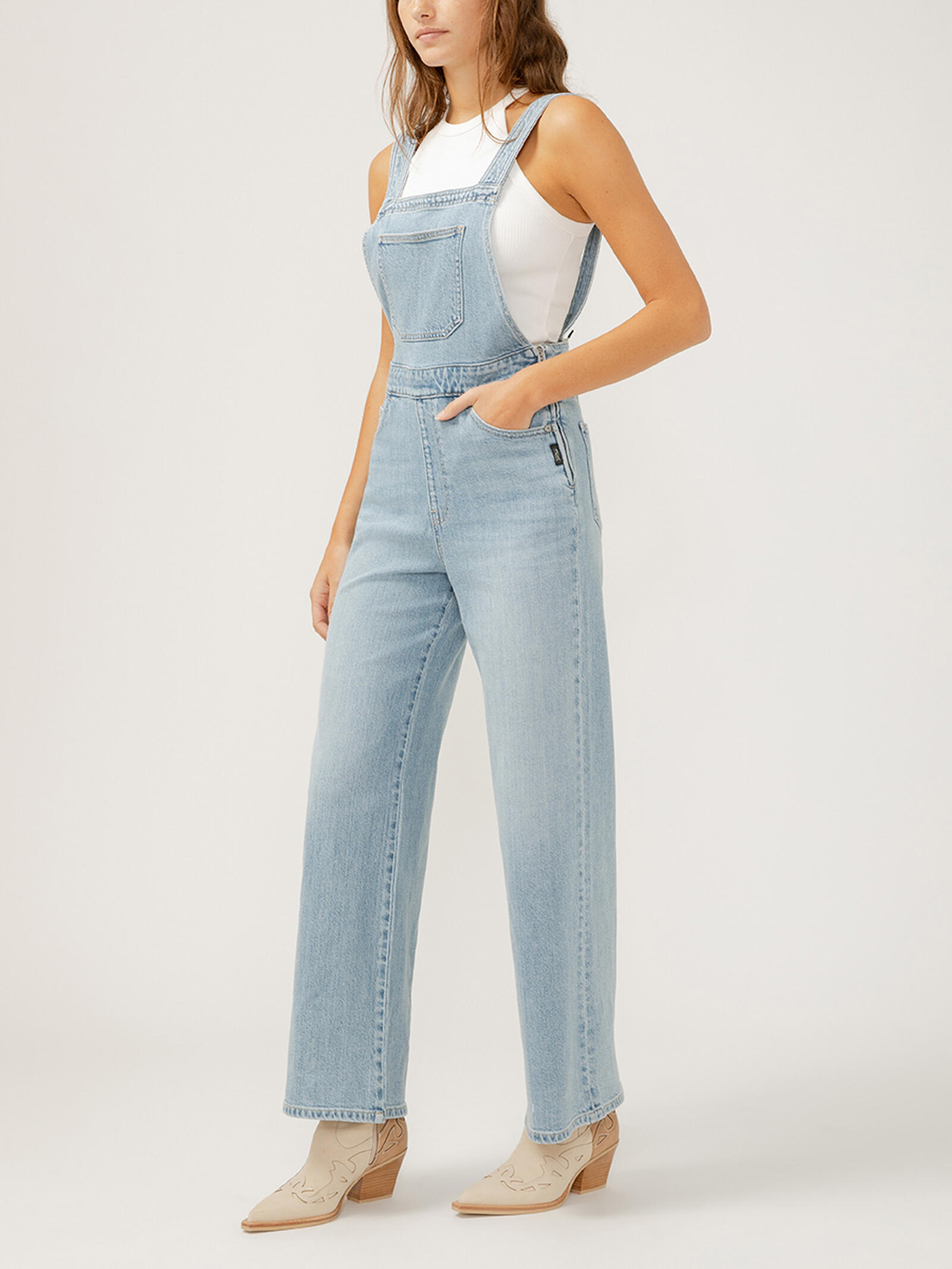 Updated marketing description: Elevate your denim game with on-trend wide leg denim overalls that have just enough stretch. With a mid rise, classic bib pocket, and adjustable back buttons that let you wear the straps straight, crossed, or however you want, these bring more variety to your everyday lineup.