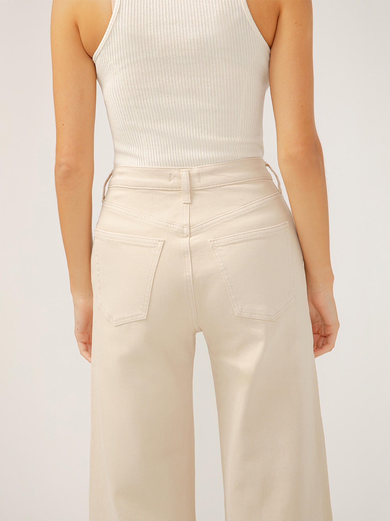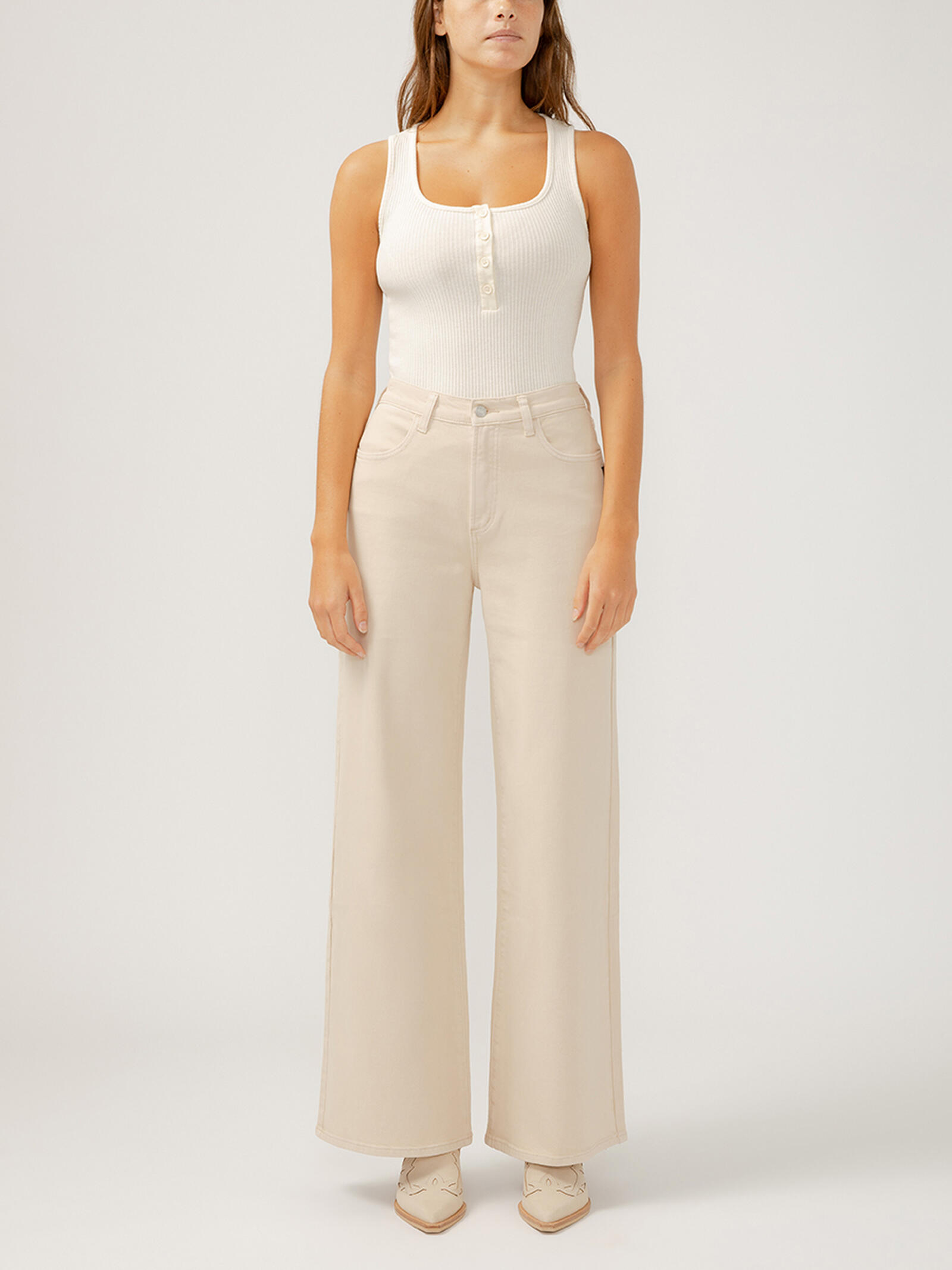 - Wide leg jeans in soft spring hues
