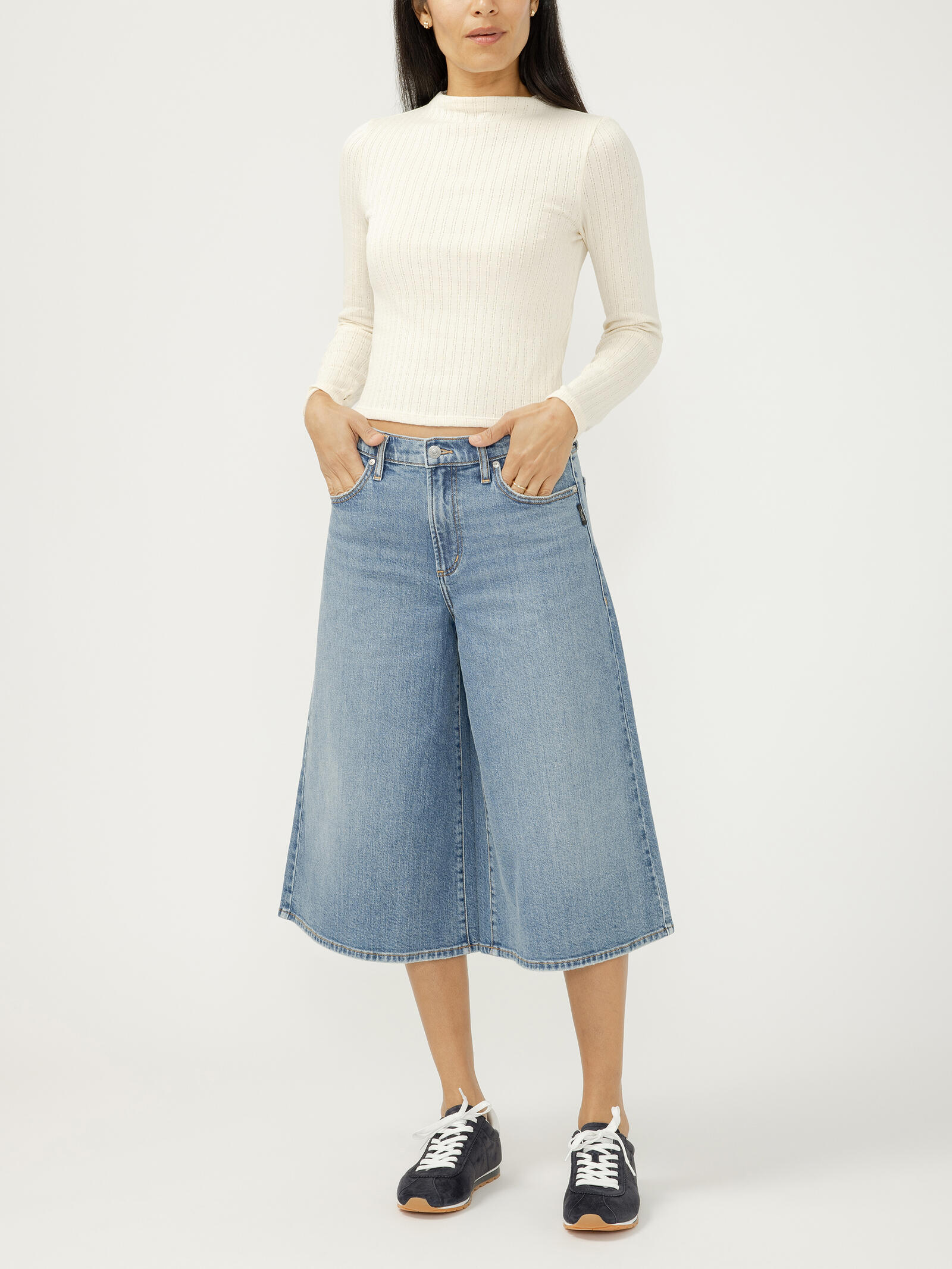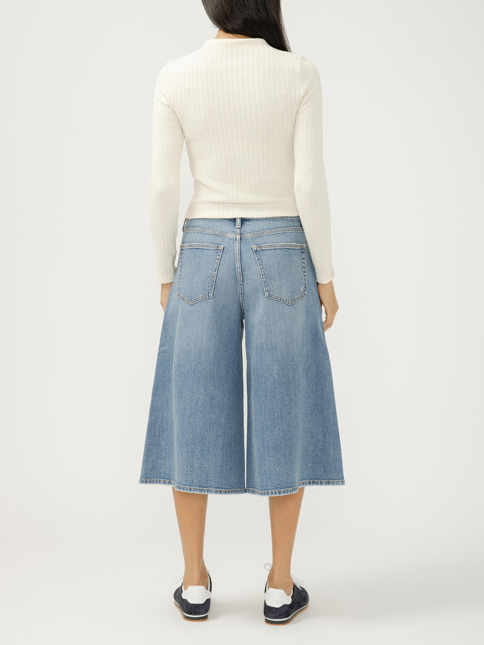 An ultra-wide-leg culotte jean with a relaxed fit through the hip and thigh. Designed in low-stretch denim that holds its shape, these cropped jeans hit above the ankle for a polished yet easygoing look you can dress up or keep casual.