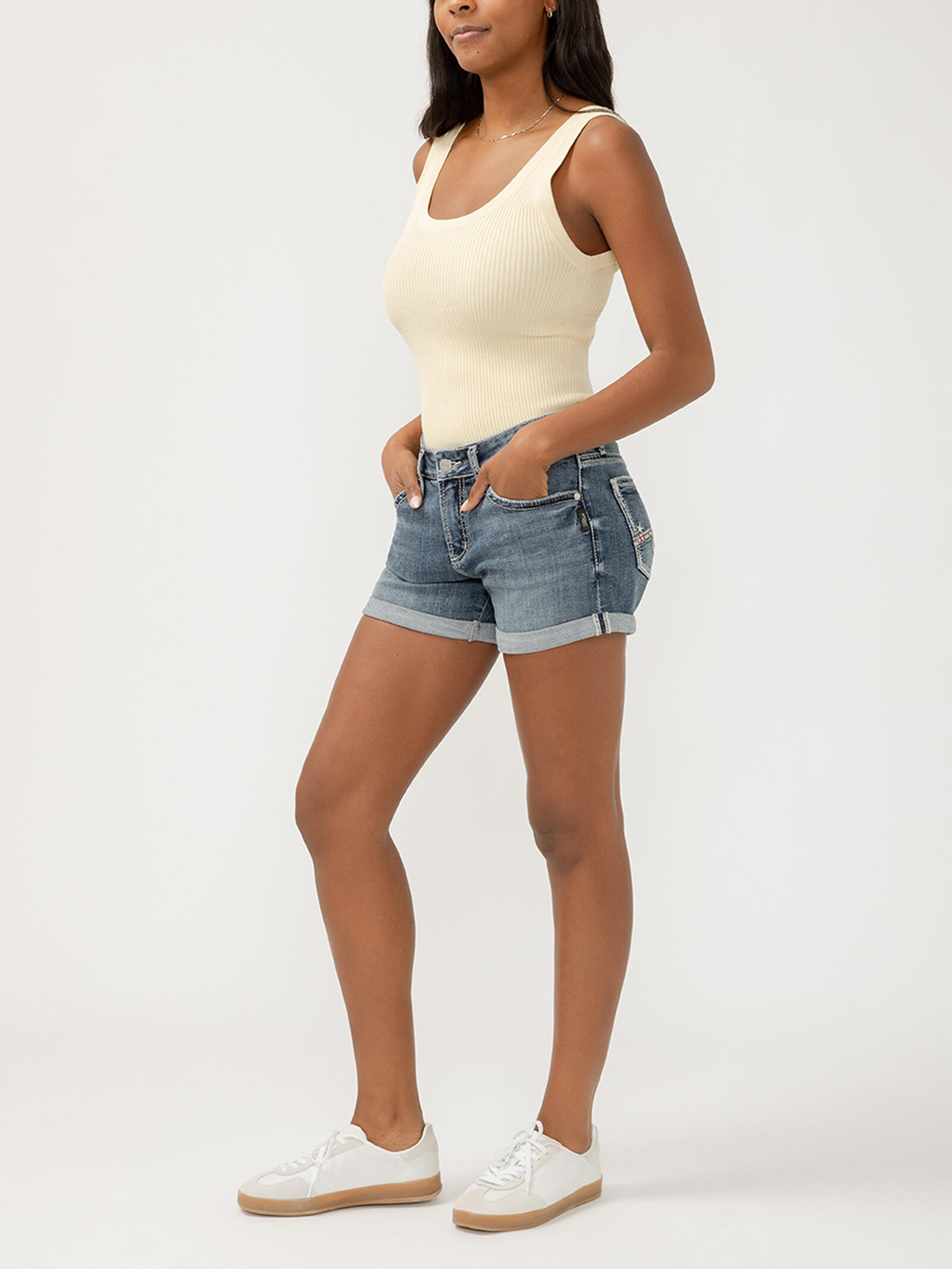 Want to show off your curves but prefer a laid-back look and feel? Our Boyfriend shorts feature a comfortable, classic mid rise and a no-gap fit designed for curvy body types. The relaxed hip and thigh allows for maximum comfort, while the slim leg creates a flattering silhouette.