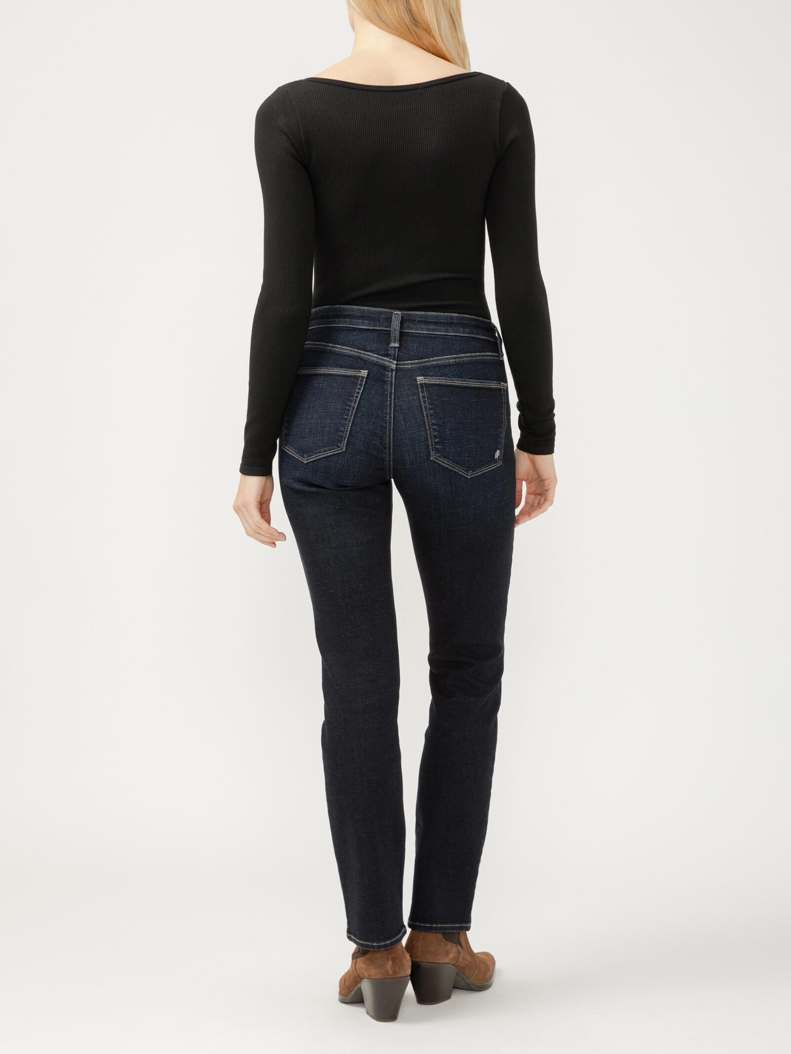 - Straight leg jeans in a dark indigo wash