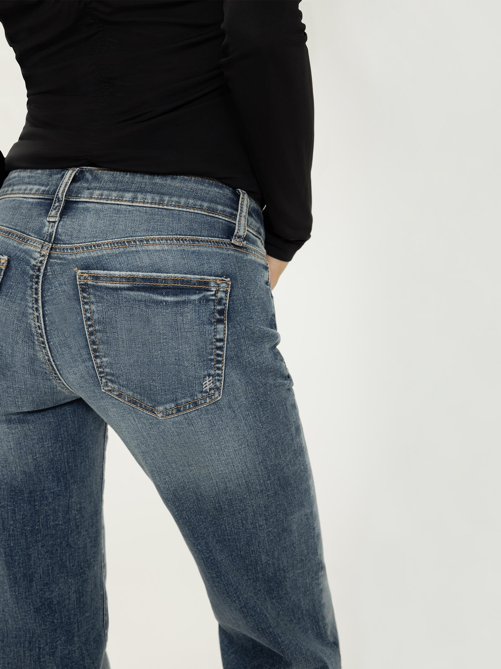 • Trouser leg jeans with a medium indigo wash