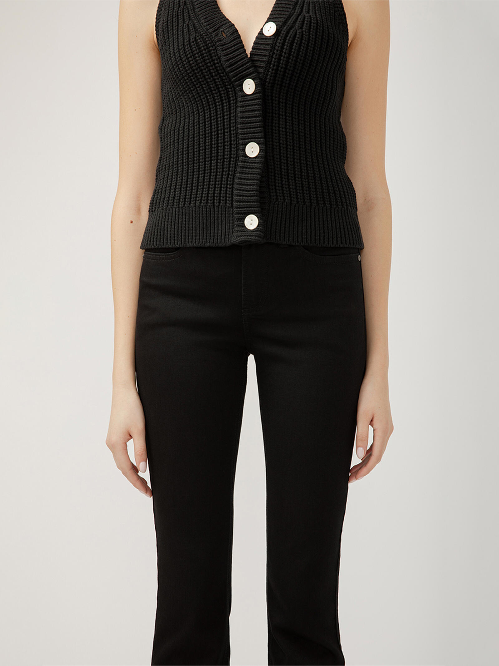 - Straight leg jeans with an inky black wash