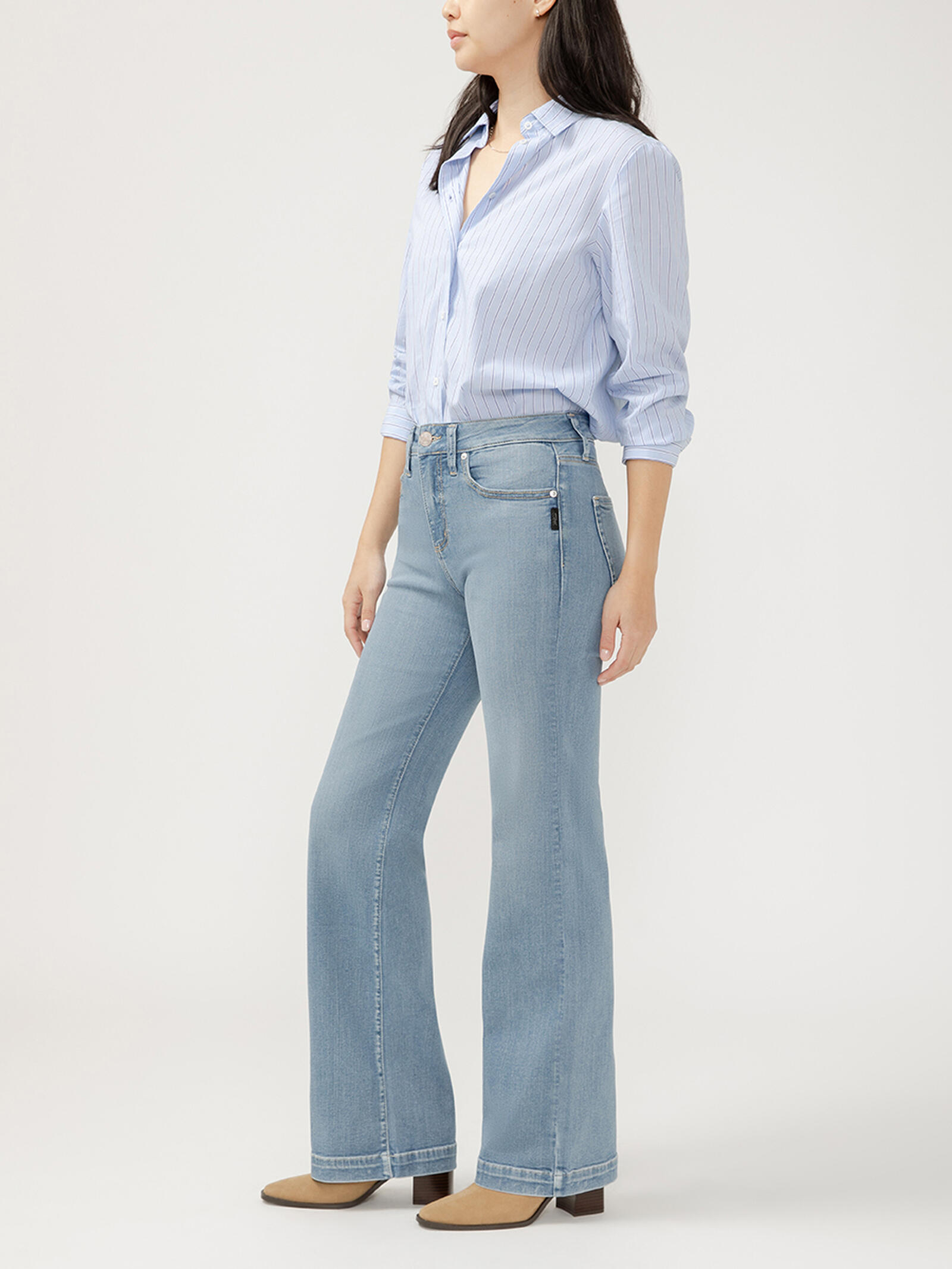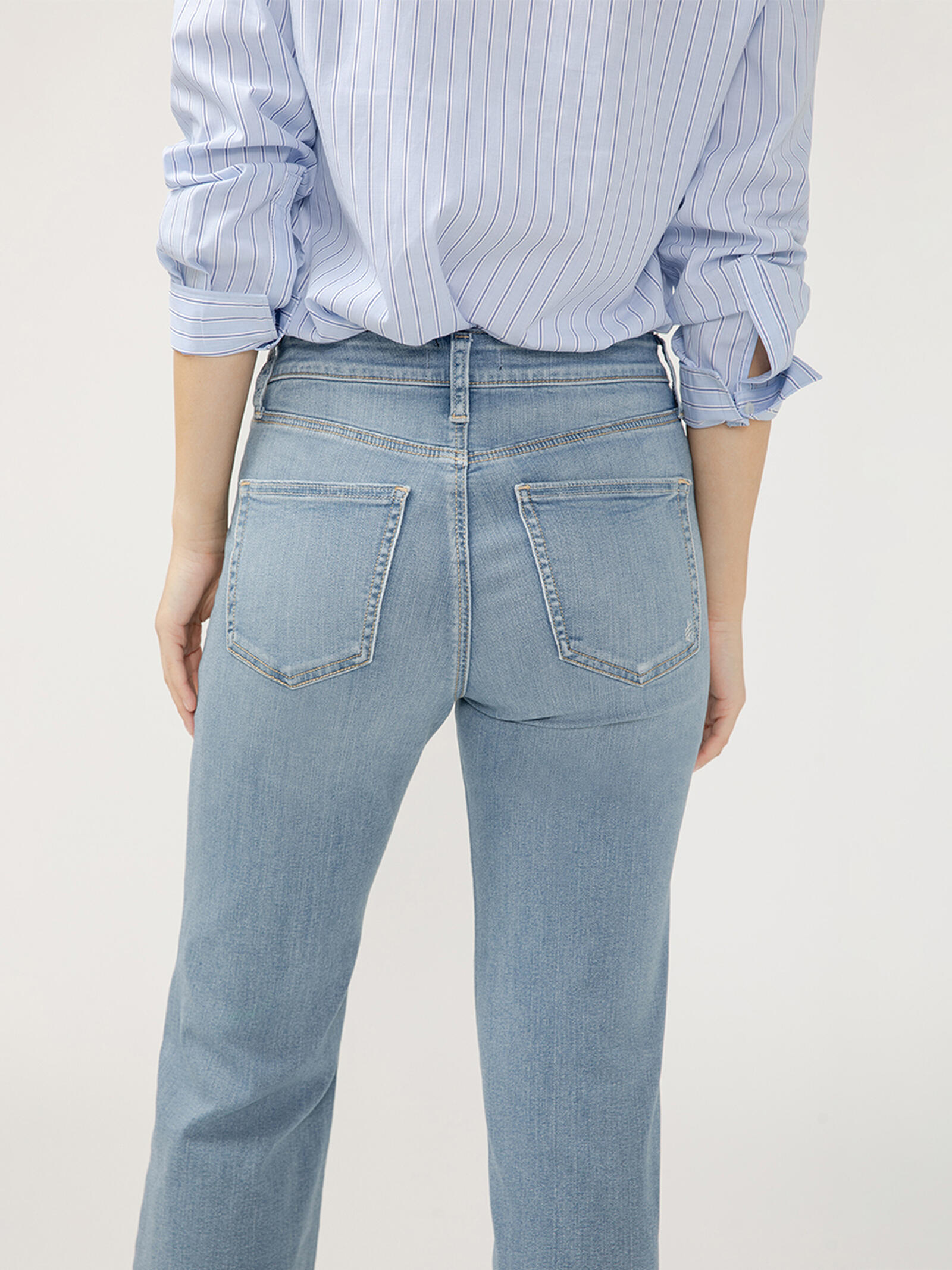 Searching for the perfect curvy fit jeans? Meet Avery—designed to flatter those with a smaller waist and fuller hips. These women’s high rise jeans provide extra coverage, while a contoured waistband prevents gapping. Finished with ease in the hip and thigh for curve-hugging perfection.