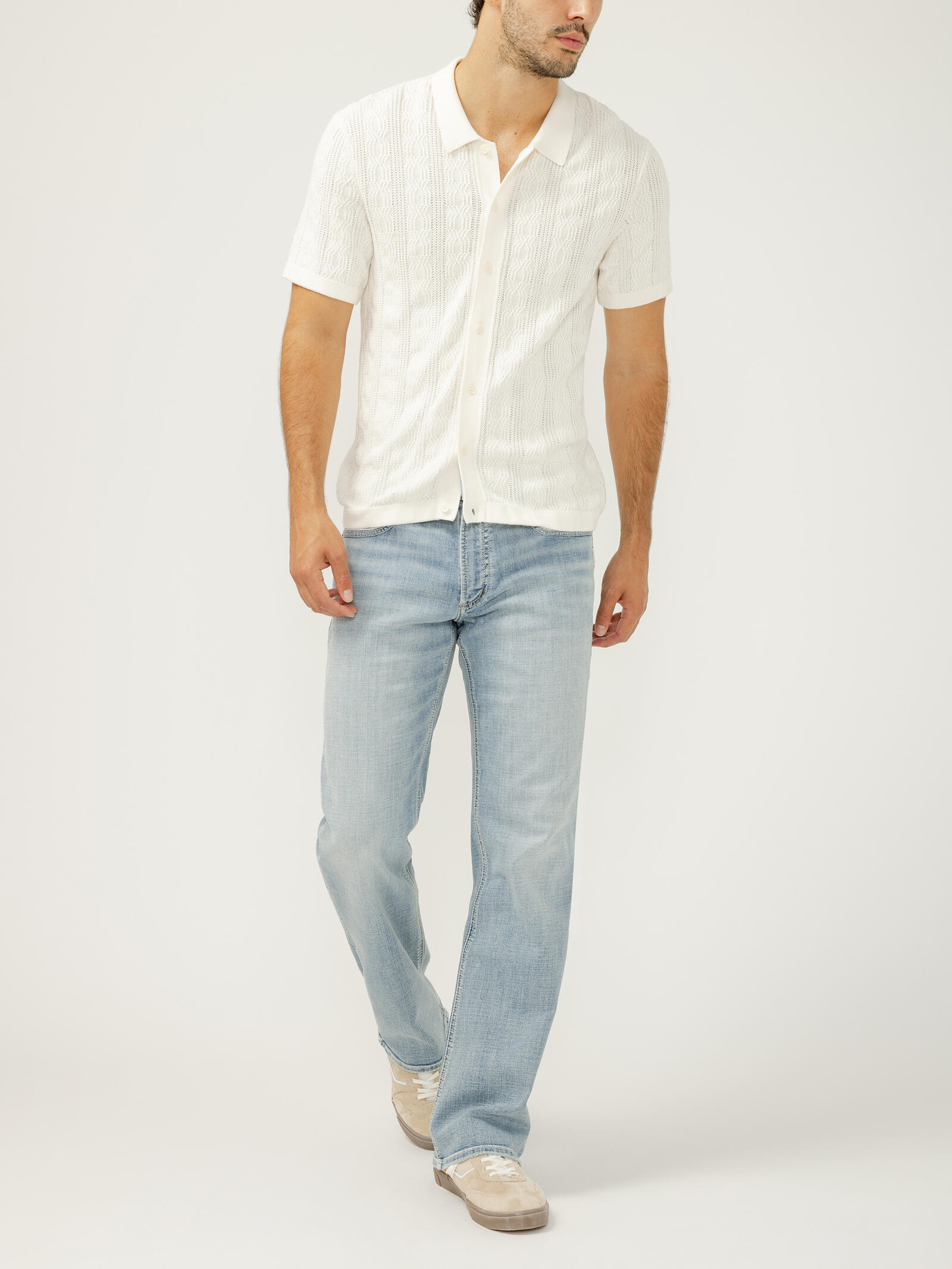 Zac relaxed fit jeans sit just below the waist with a relaxed fit through the hip and thigh. With a 19" straight leg opening, these jeans give you a casual, yet refined look, and are versatile enough to wear with your favorite boots.