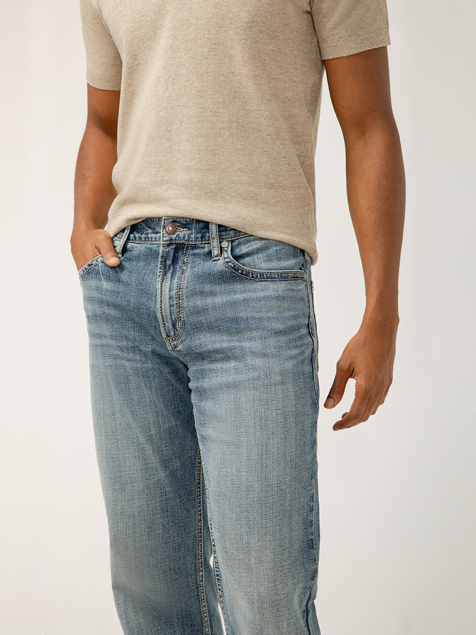 Zac relaxed fit jeans sit just below the waist with a relaxed fit through the hip and thigh. With a 19" straight leg opening, these jeans give you a casual, yet refined look, and are versatile enough to wear with your favorite boots.