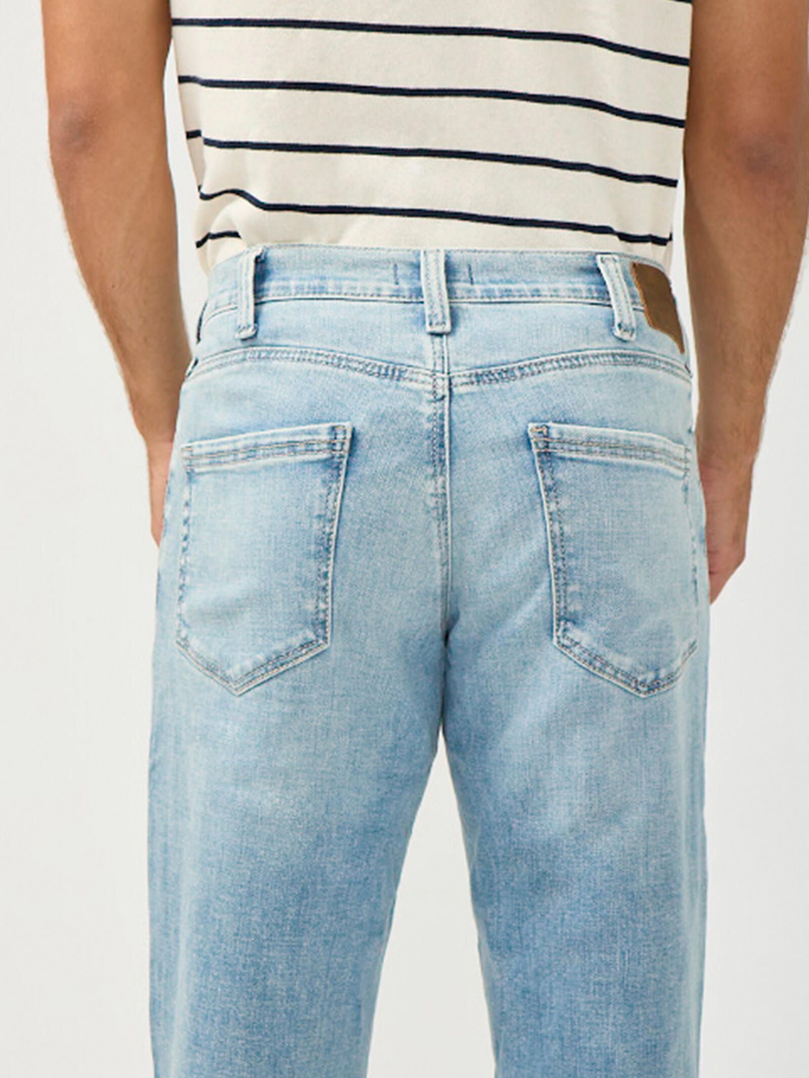 The Eddie jean is a modern slim straight leg, sitting at the waist, it features a relaxed fit through the hip and thigh for extra comfort, paired with a slim straight leg opening for a streamlined look.