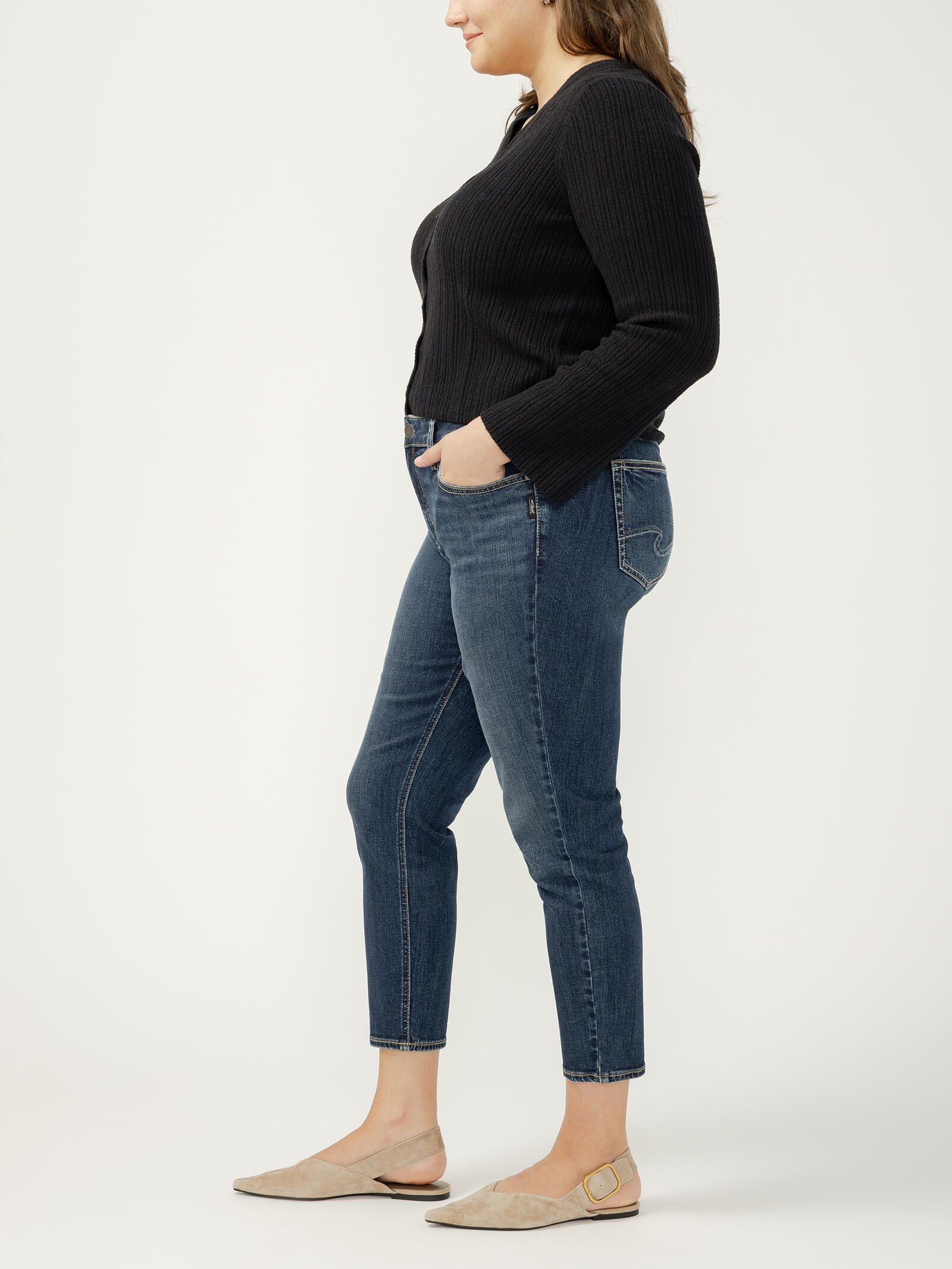 Meet Elyse, our most comfortable curvy fit jeans. These women’s mid rise jeans are designed with a little extra room in the hip and thigh to perfectly hug your curves and feature an eased waistband to keep the midsection comfy, preventing digging even when sitting.