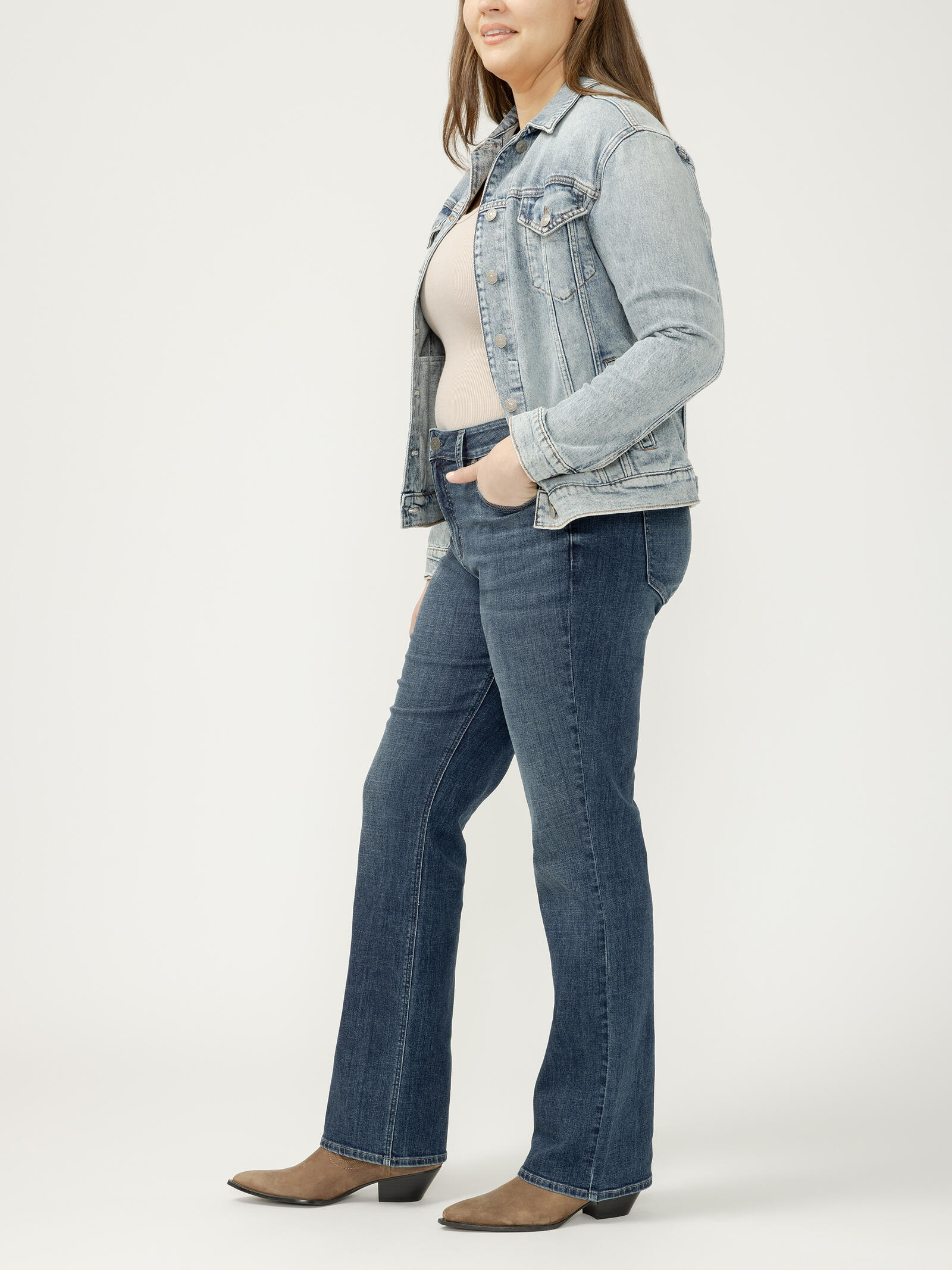 Suki is the best-selling Silver Jeans Co.™ curvy fit for good reason. Made with Luxe Stretch denim and designed to enhance curves, this fit creates a flattering silhouette with ease in the hip and thigh. The classic mid rise is comfortable, and the contoured waistband ensures a zero-gap fit.